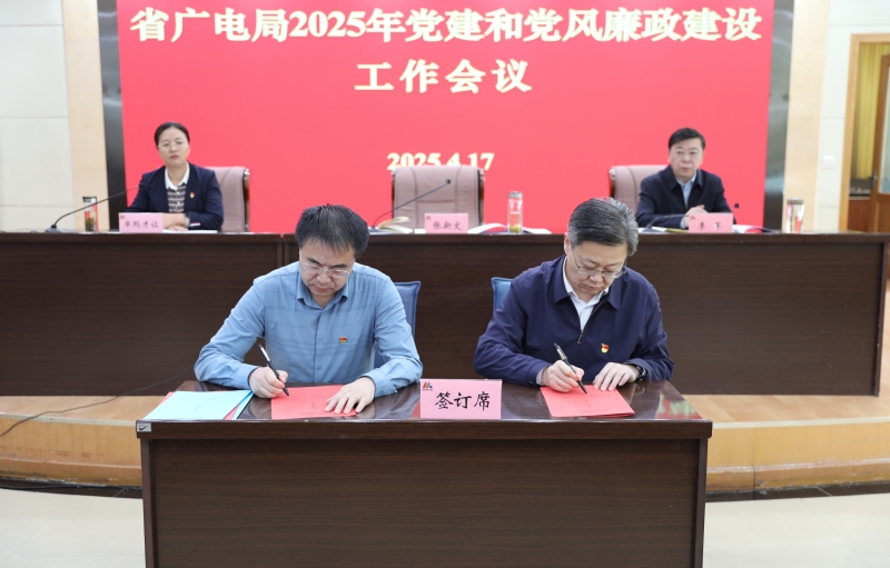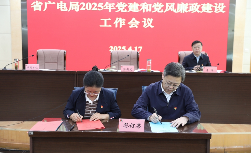 会议观看了省广电局2024年度机关党建工作成果视频,书面传达了习近平总书记在二十届中央纪委四次全会上的讲话精神、十四届省纪委四次全会精神及省直机关党的建设工作会议精神,签订了省广电局2025年机关党建工作目标责任书、党风廉政建设工作目标责任书和意识形态(网络意识形态)工作目标责任书。3名基层党组织书记作交流发言。