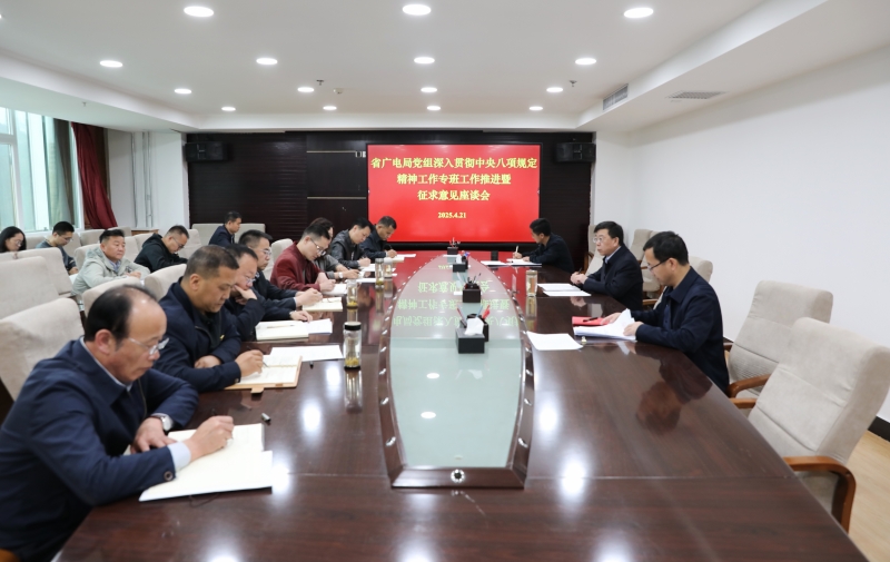 4月21日,省广电局党组深入贯彻中央八项规定精神学习教育工作专班召开工作推进暨征求意见会,局党组成员、副局长李军主持会议,局学习教育专班成员、社会监督员共20余人参加会议。