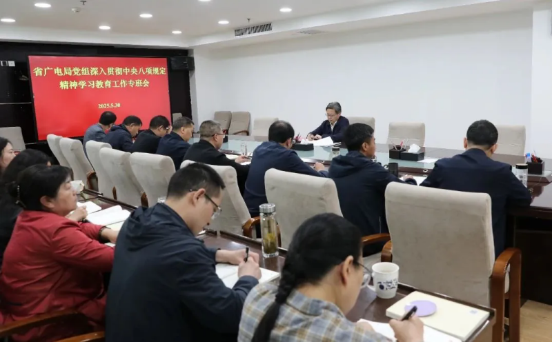 为进一步筑牢中央八项规定堤坝,推动作风建设走深走实。5月30日,省广电局党组召开深入贯彻中央八项规定精神学习教育工作专班会,局党组书记、局长张新文主持会议并讲话,局属各单位各部门共30余人参加会议。