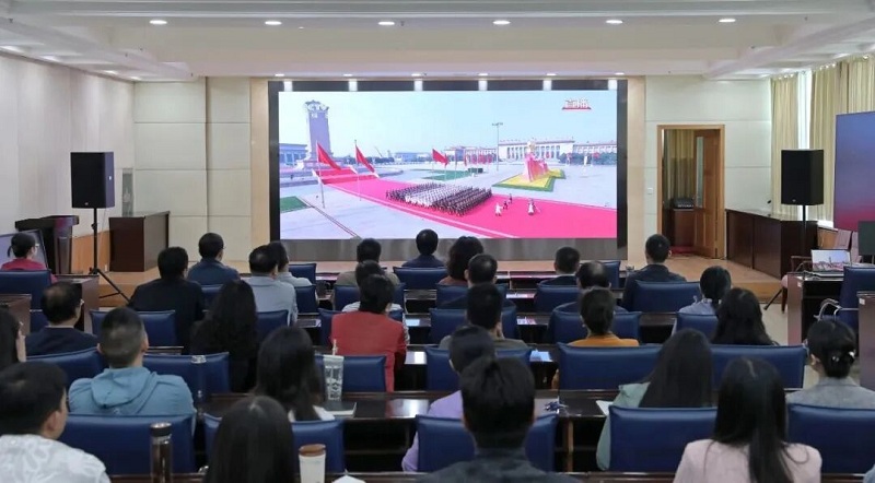 上午9时许,机关多功能厅座无虚席,干部职工早早来到现场,整齐就座,怀着激动的心情等待阅兵仪式开始。直播过程中,大家全神贯注地注视着屏幕,聆听习近平总书记重要讲话,观看习近平总书记检阅受阅部队,大家被受阅部队的铿锵步伐、先进装备的列阵亮相深深震撼。当看到空中护旗梯队、徒步方队、战旗方队、装备方队、空中梯队依次通过天安门广场时,会议室里不时响起热烈的掌声。