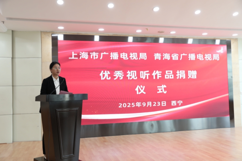 捐赠仪式上,青海省广播电视局副局长卓玛才让致辞,指出,此次上海局对我省优秀视听作品的捐赠行动既为沪青两地广电事业进一步深化合作、共促发展搭建了桥梁,也是落实双方主要负责同志在上海电视节期间达成共识的实际举措,更为青海广电带来了发展动力、创新思路与宝贵经验,将为青海广电拓宽视野、推动高质量发展注入强劲活力。青海拥有三江源、青海湖、祁连山等世界级生态IP以及丰富多元的影视拍摄资源,既是推动精品创作出新出彩的资源“富矿”,也是青海广电承接援助促发展的资源禀赋。青海将积极承接上海援青优势资源,为上海影视创作提供素材、场景和服务保障,期待双方在资源共享、优势互补中实现互利共赢,共同探索影视创作高质量发展的新路径、新机制、新成果。