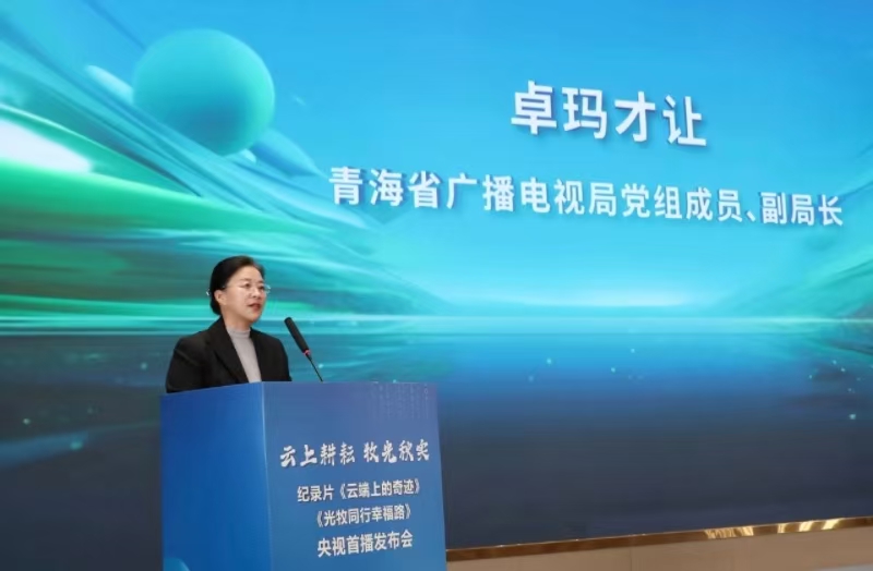 为深入贯彻落实习近平文化思想,提高我省视听精品的传播力和影响力,10月14日,省广电局在西宁举办“云上耕耘 牧光秋实”——纪录片《云端上的奇迹》《光牧同行幸福路》央视首播发布会。省委宣传部副部长马建立,青海盐湖工业股份有限公司党委书记、董事长侯昭飞,中国农业大学国家乡村振兴研究院副院长左停出席活动,省广电局党组成员、副局长卓玛才让致辞。